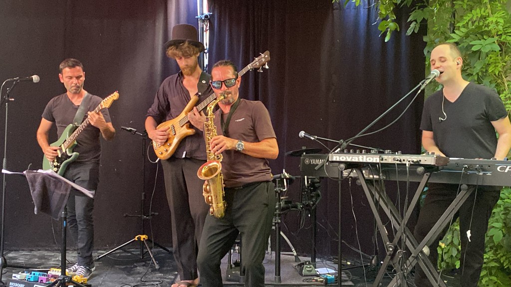 Nous avons offert au public un spectacle de 50 minutes, composé de nos chansons originales, dont l’Échiquier en ouverture et Identité binaire en clôture, avec le passage de notre batteur Jérémie au saxophone. Nous avons été touchés par l’écoute et l’intérêt du public, qui a découvert pour la plupart notre nouvelle formule, et qui a manifesté son émotion à la fin du concert.