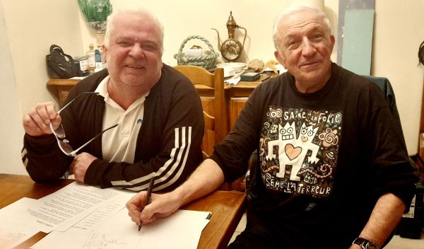 — Alain, le parolier, et Thierry, le peintre, échangent sur les 10 titres sélectionnés ! Il lui dit des secrets, on parle aussi de maquette, trop hâte —